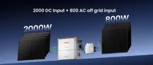 Het systeem kan zowel laden als ontladen via een standaard wandcontactdoos. Perfect voor woningen met micro-omvormers.